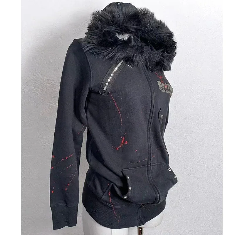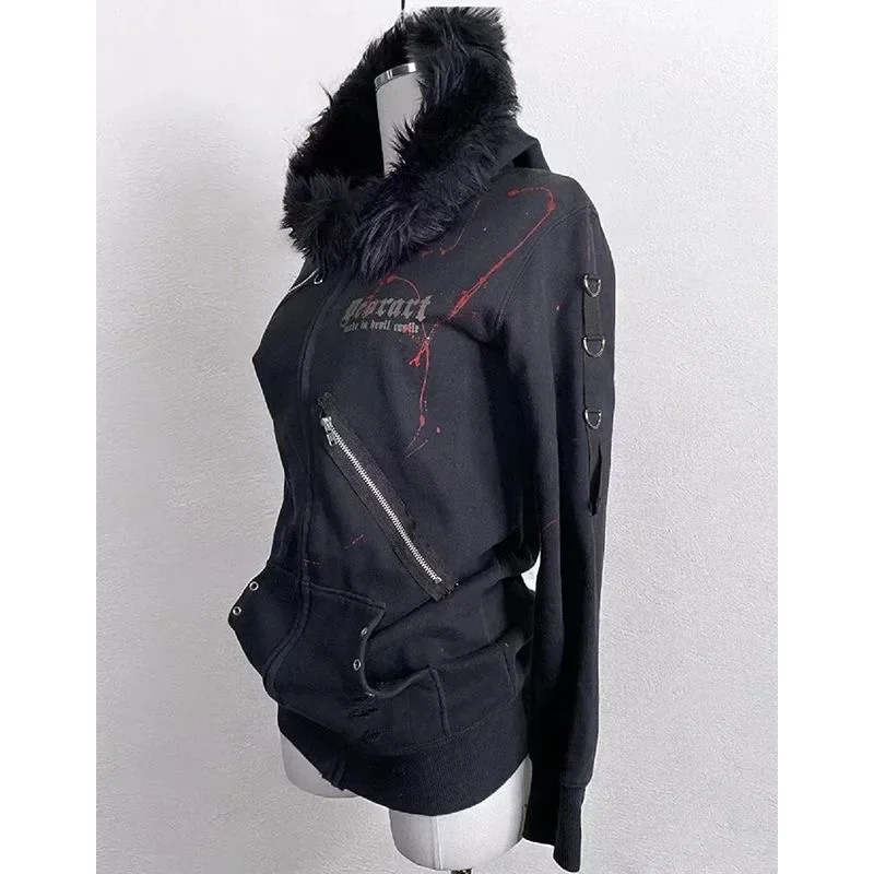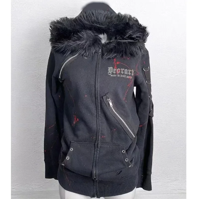 Hearujoy Winter High Street vintage Plush sweatshirt Women y2k Goth Harajuku Fashion Street zipper hoodie couple casual loose coat