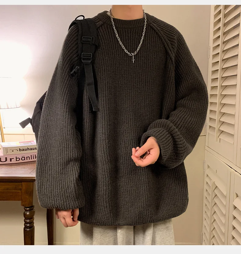 Hearujoy Winter Thick Sweater Men Warm Retro Knitted Pullover Men Streetwear Korean Loose Long Sleeved Sweater Mens Jumper Clothes M-2XL