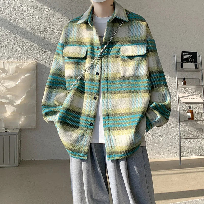 Hearujoy Winter Woolen Coat Men Warm Fashion Retro Thicken Plaid Coat Men Streetwear Korean Loose Short Woolen Coat Mens Thick Jacket