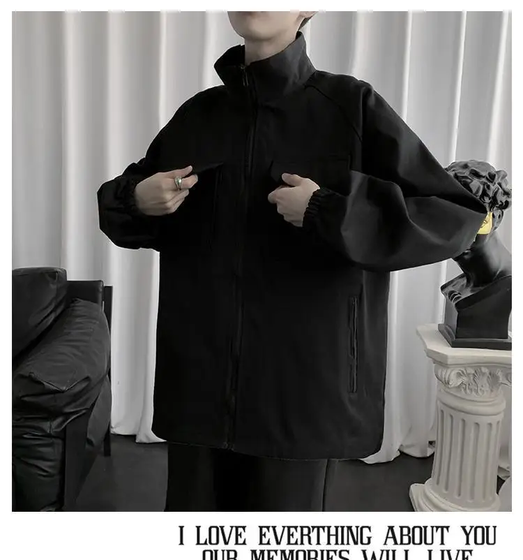 HEARUJOY - Work Jacket Men's Spring Autumn Korean Trendy Handsome Tops Ins Brand Loose Stand Collar Jacket