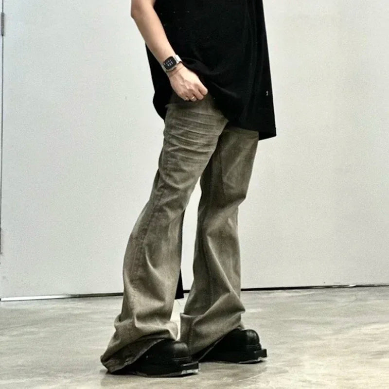 Hearujoy Wrinkled Wshed Mens Gray Jeans Pants Straight Vintage Casual Baggy Denim Trousers Oversized Loose Cargos