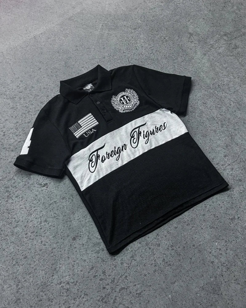 Hearujoy Y2k American street fashion retro Polo shirt Goth Harajuku Alphabet embroidery design short sleeve trend lapel T-shirt men top