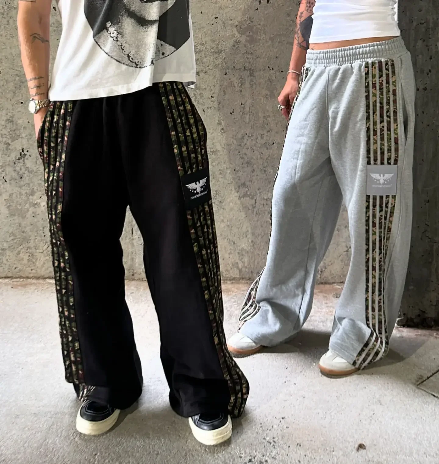 Hearujoy Y2k High Street Goth Harajuku Striped Embroidered straight-leg Pants Women pants Vintage street knit couple loose slacks