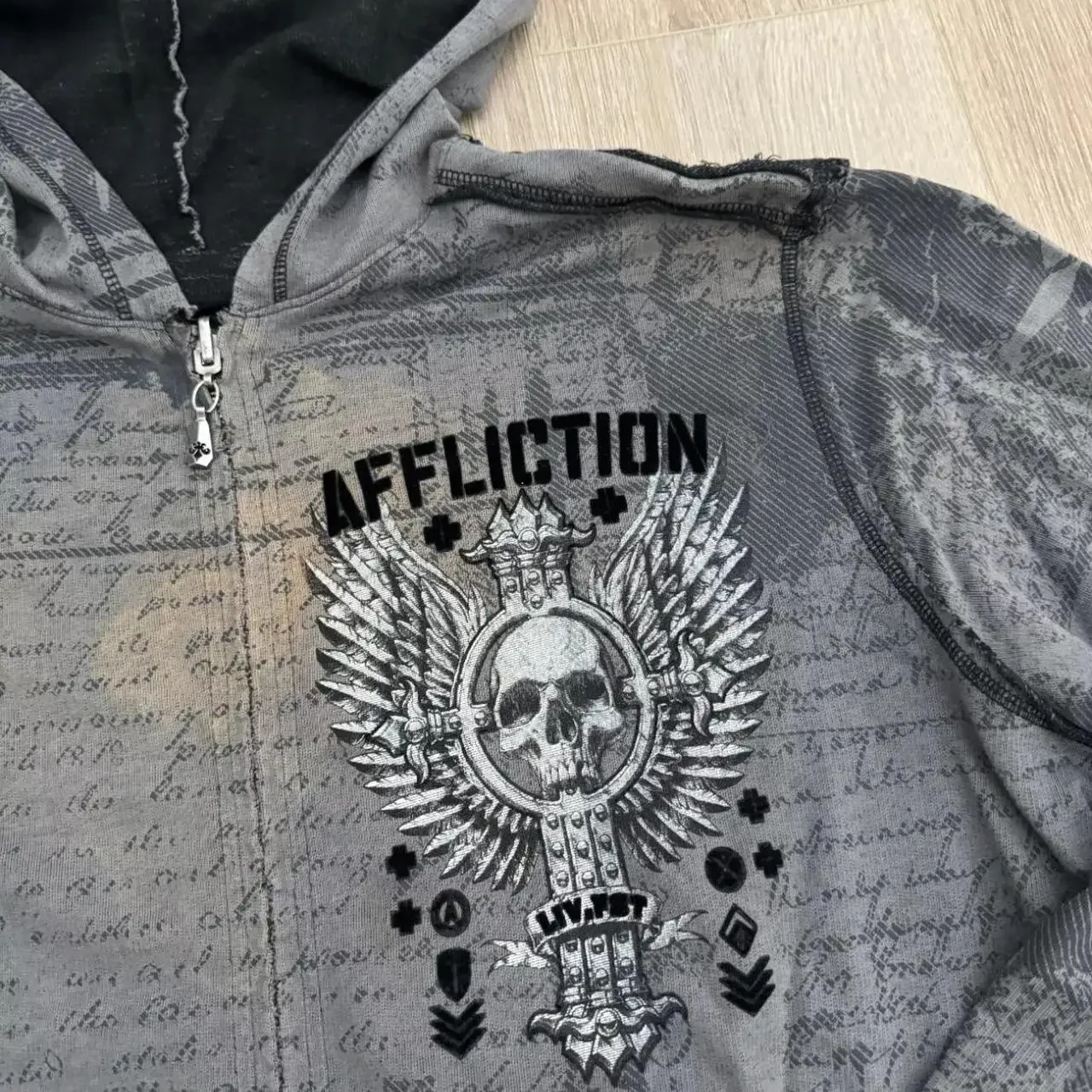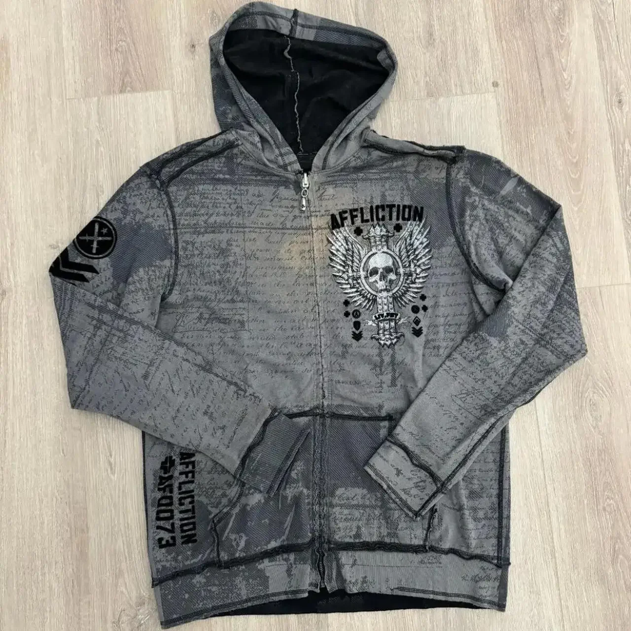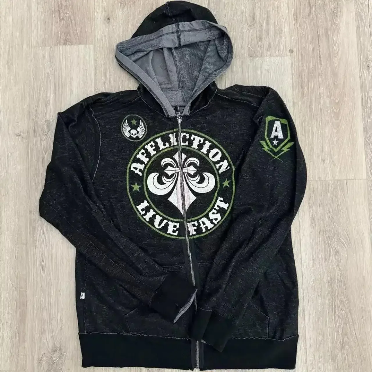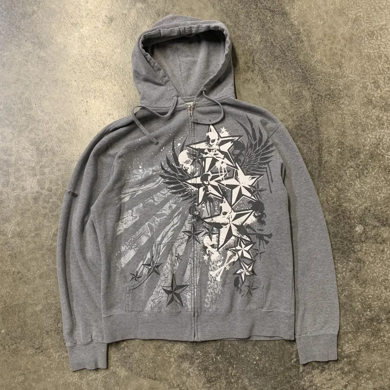 Hearujoy Y2K New Skeleton Pattern Grey Zipper Hoodie Double sided Printed Hoodie Men's Women's Street Retro Harajuku Hip Hop Sweatshirt