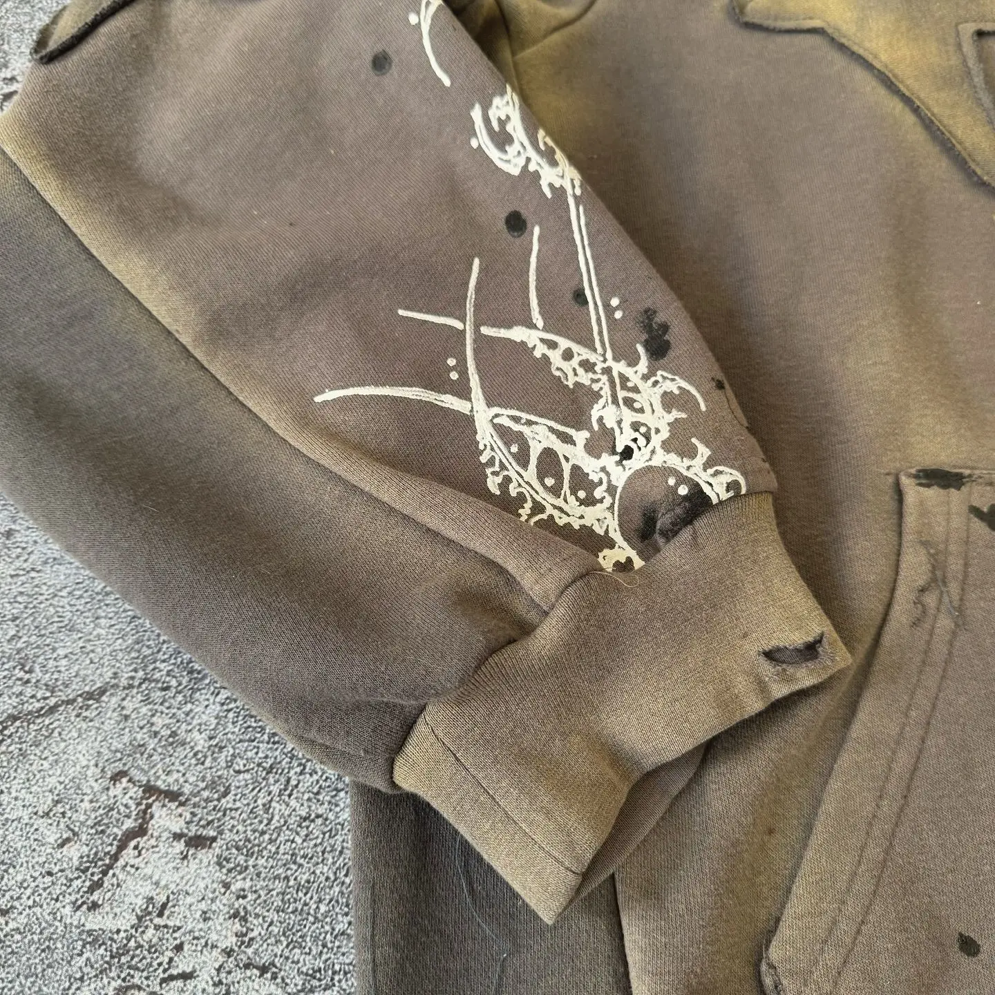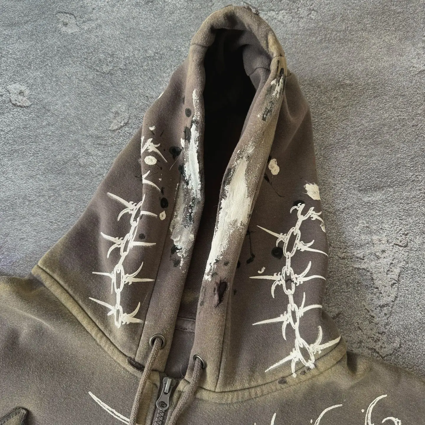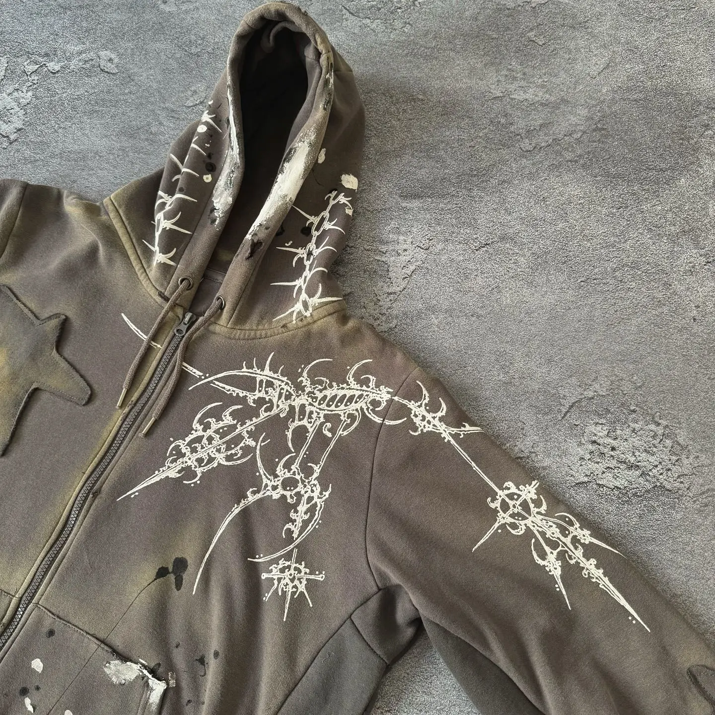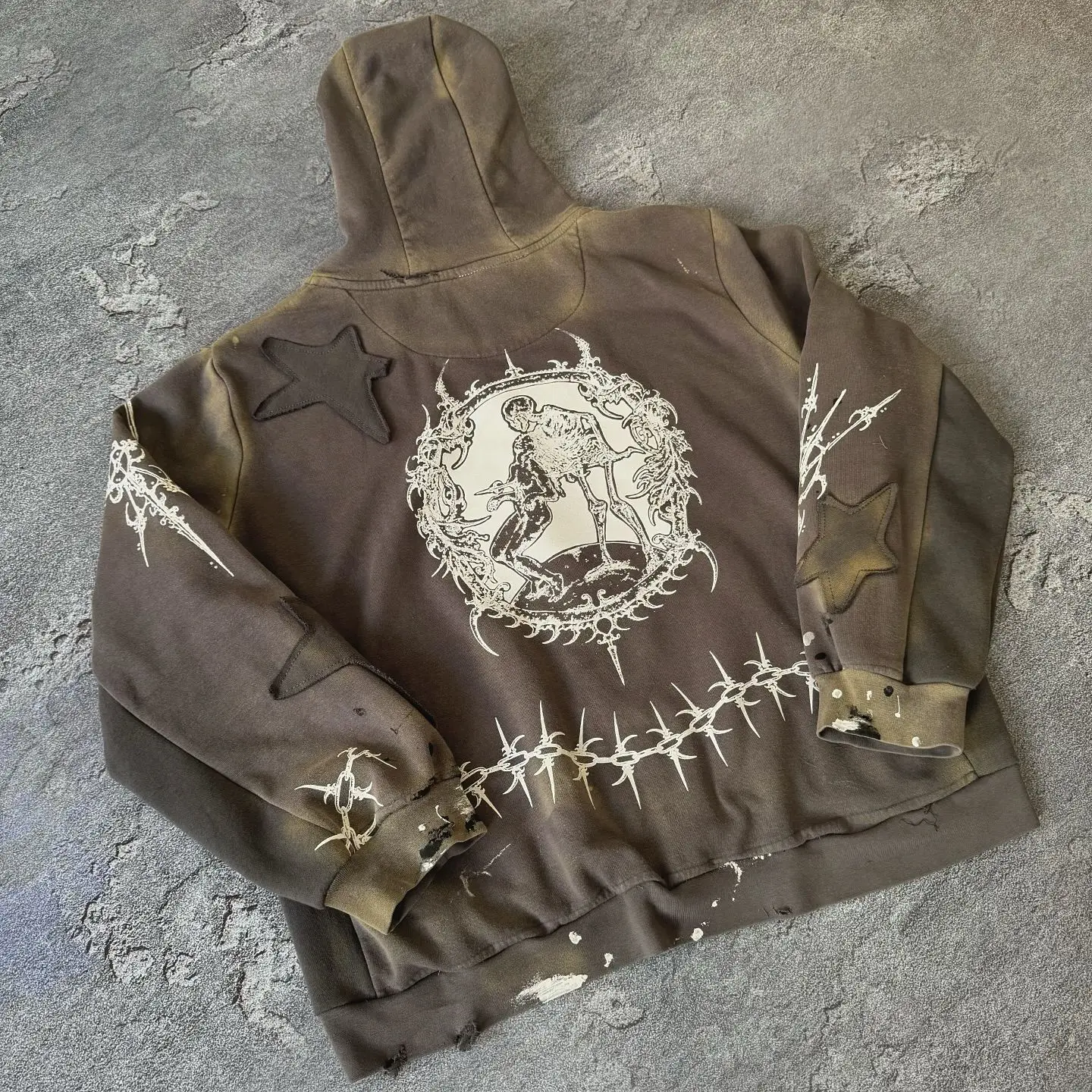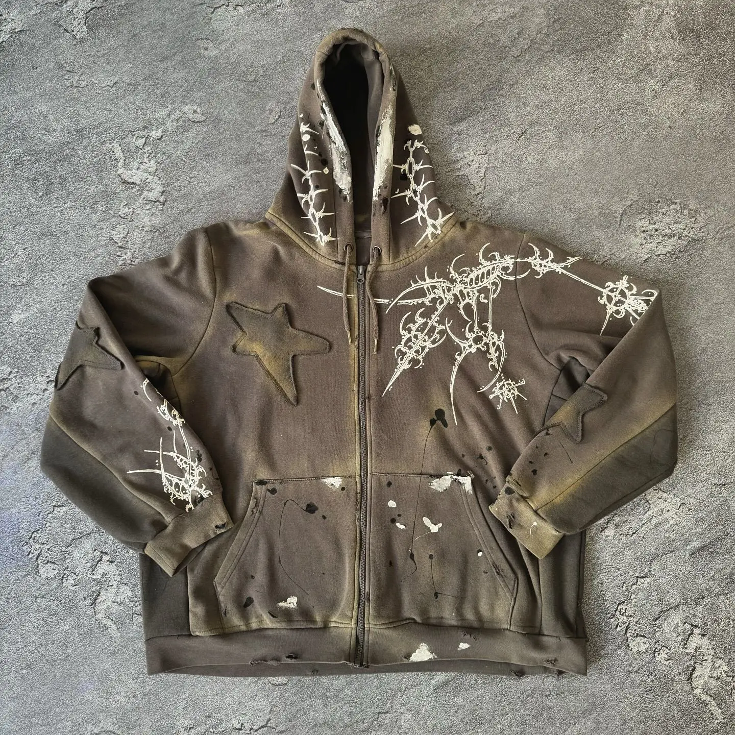 Hearujoy Y2K New Tie Dye Zipper Hoodie Retro Star Pattern Hoodie High Street Hip-Hop Gothic Punk Vintage Men's Women's Loose Printed Coat