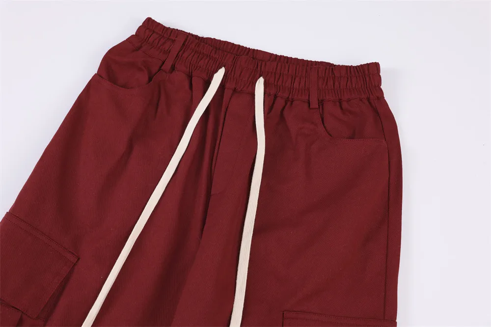 Hearujoy Y2K Red Cargo Pants for Men Harajuku Black Trousers Male Streetwear Hip Hop Pocket Loose Casual American Safari Style