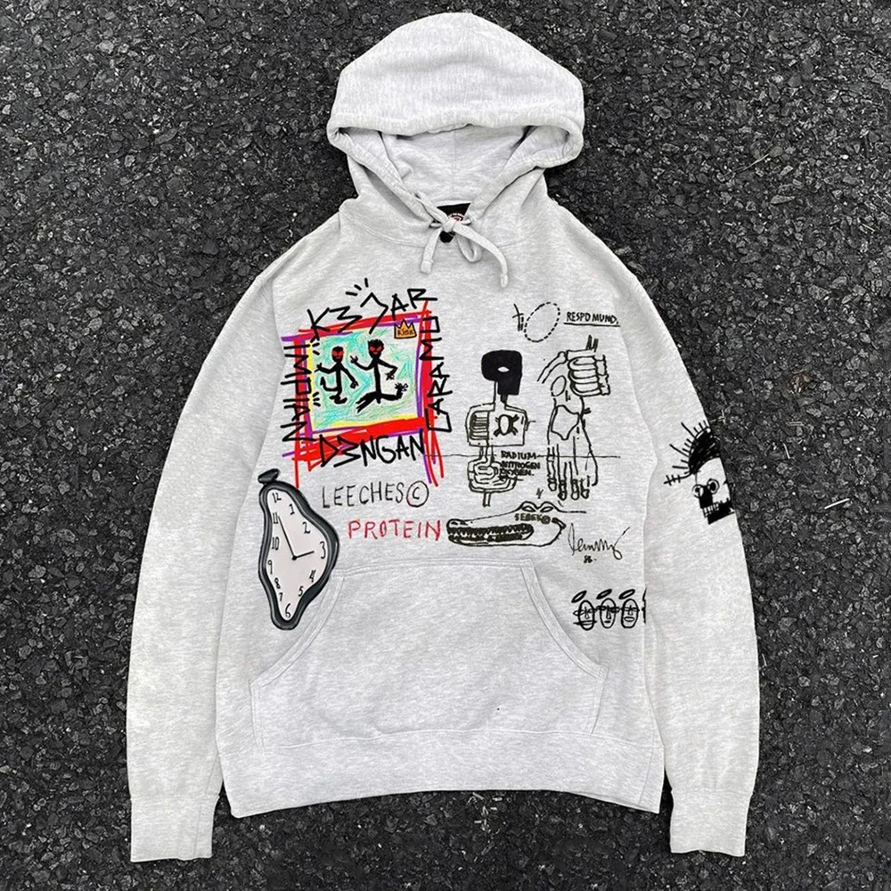 Hearujoy Y2k Retro College Style Hoodie Male And Female Couple Outfit Line Drawing Graffiti American Hip Hop Street Sweatshirt