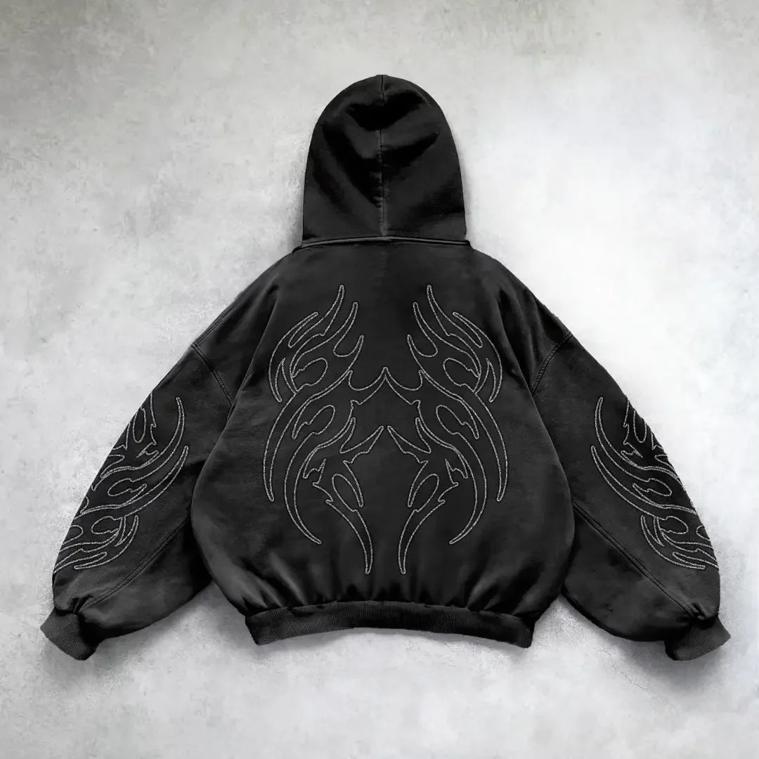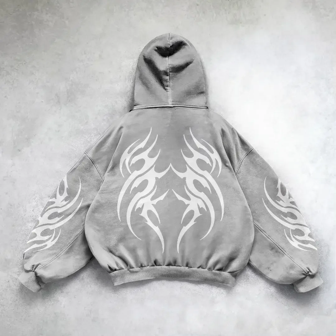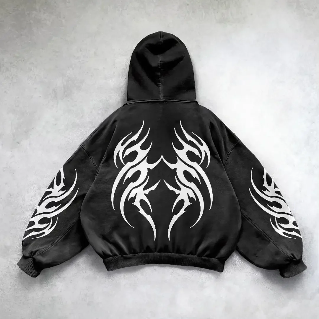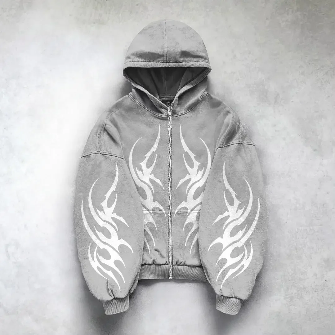 Hearujoy Y2K Retro Printed Zipper Hoodie American Punk Gothic Sport Coat Men and Women Street Hip Hop Harajuku Trendy Loose Sports shirt