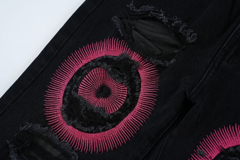 Hearujoy Y2k Streetwear Embroidered Ripped Wide Jeans for Men Washed Destroyed Torn Flared Jean Male Tassels Hip Hop Jeans Pants Baggy