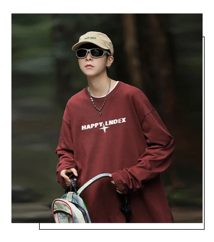 HEARUJOY - Y2k T Shirt for Men Autumn Oversized Long-Sleeved Tees Men Clothing Letter Printed Gym Anime Shirt Tops Man Graphic T Shirts