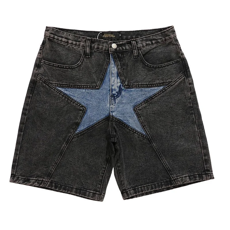 Hearujoy High-end star pattern jeans Y2K wide-leg trend casual denim shorts retro American style Harajuku fashion casual loose jeans