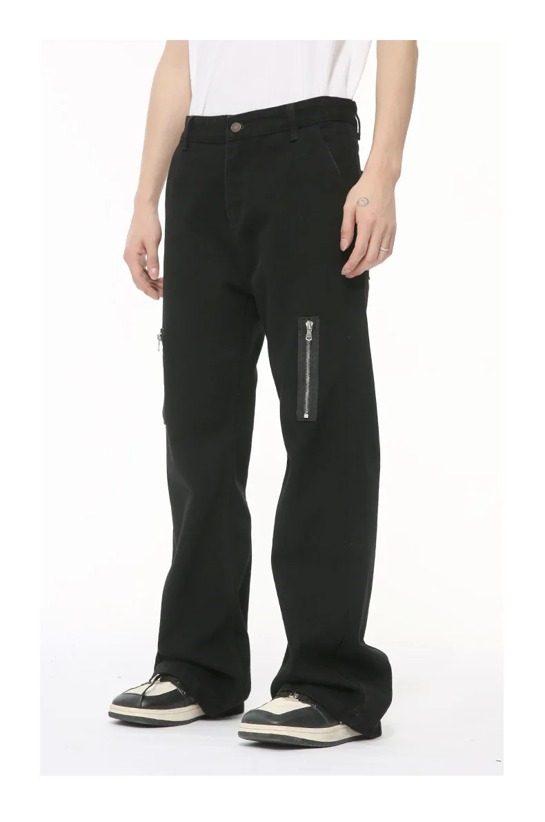 Hearujoy High Street Male Denim Pants Casual Zippers Patchwork Straight Wide Leg Male Loose Trousers Summer Chic 9C6382