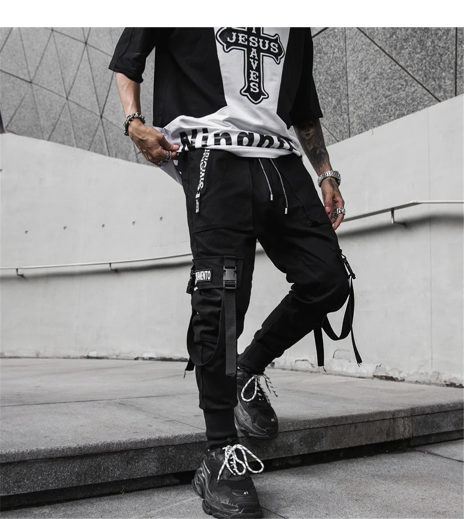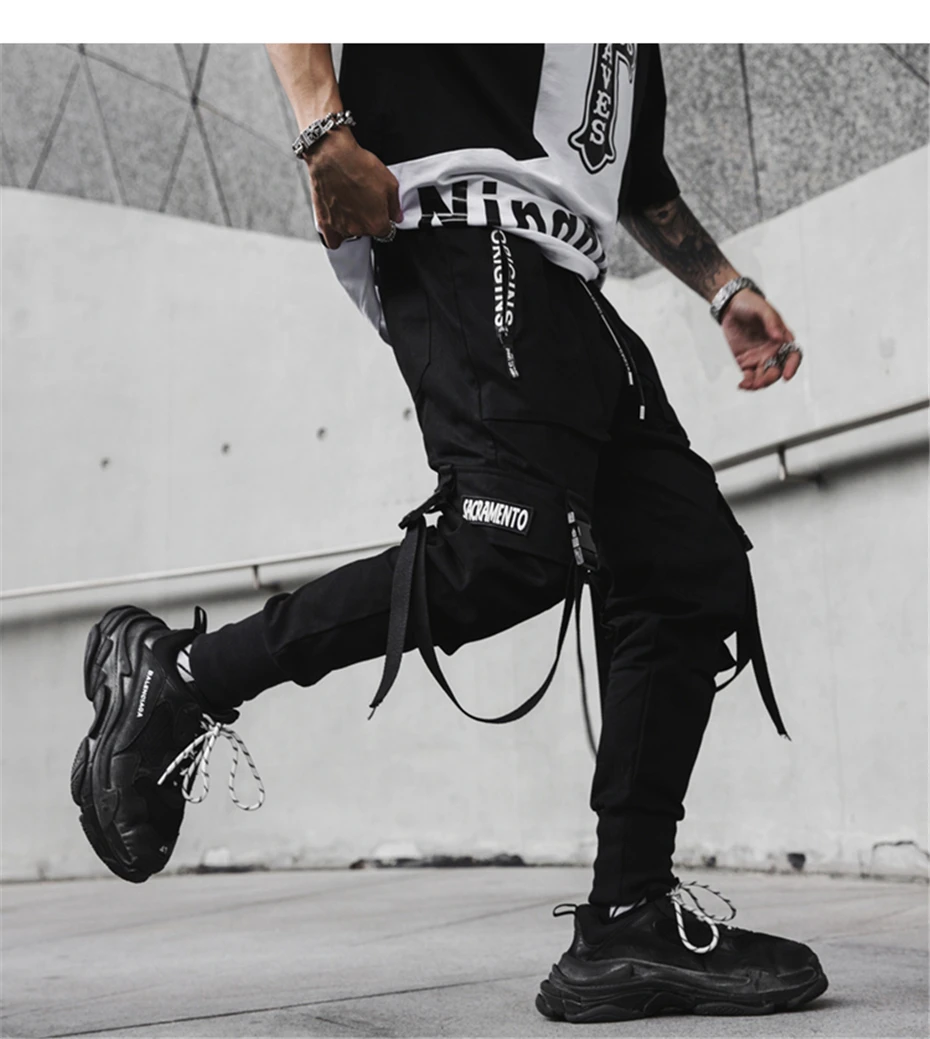 Hearujoy Hip Hop Joggers Pants Men Harajuku Streetwear Ribbons Pants Casual Slim Track Trousers Elastic Waist Male Jogger WB284