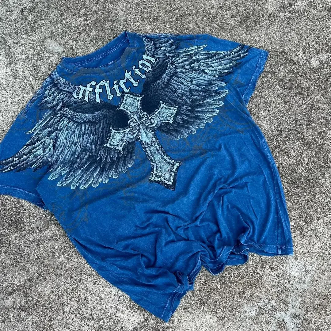 Hip-hop skull gothic print oversized short-sleeved T-shirts for women y2k summer street Harajuku retro letter design O-neck tops