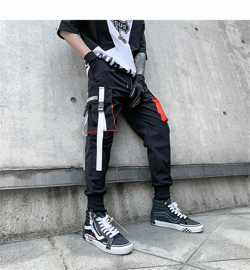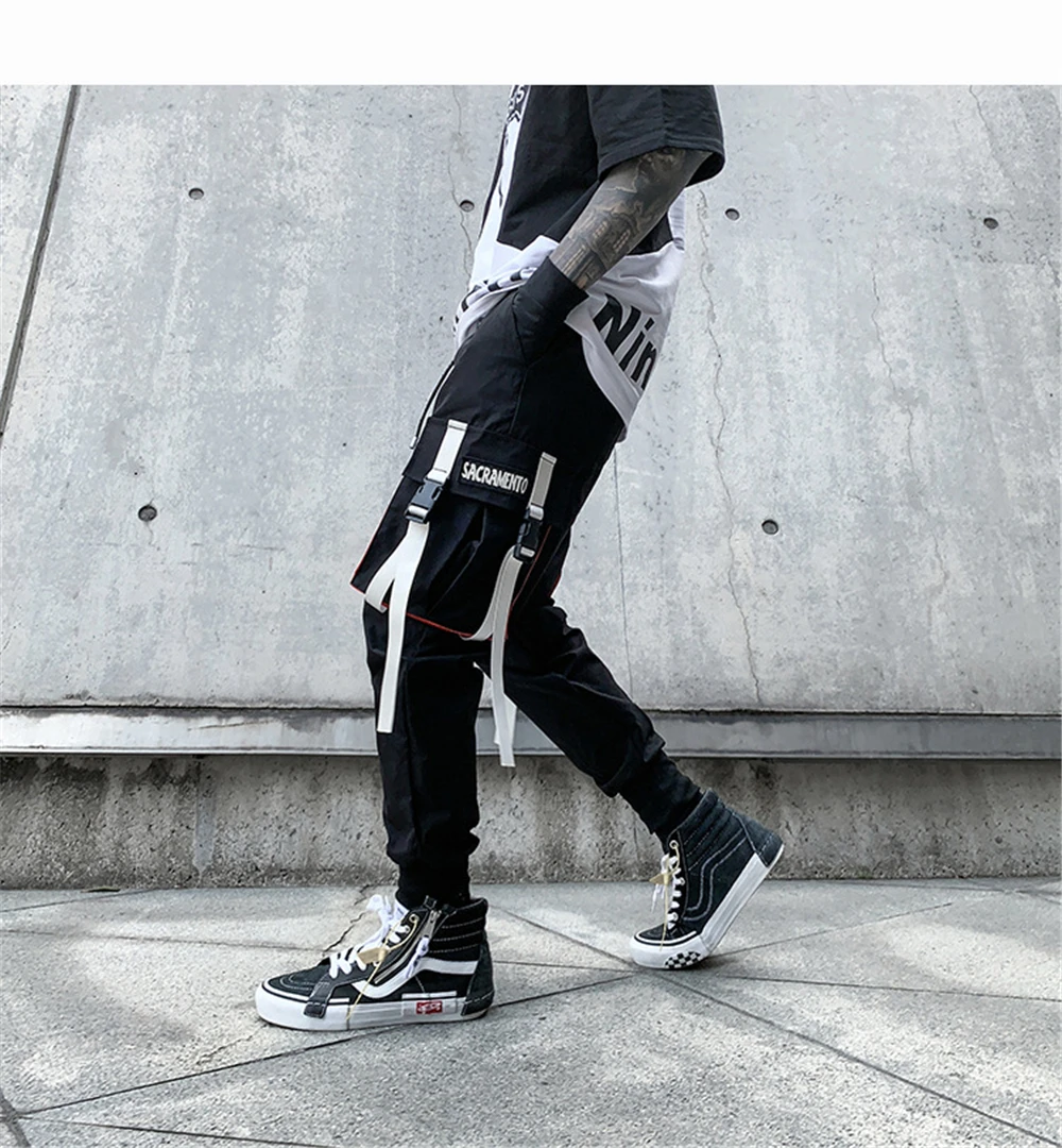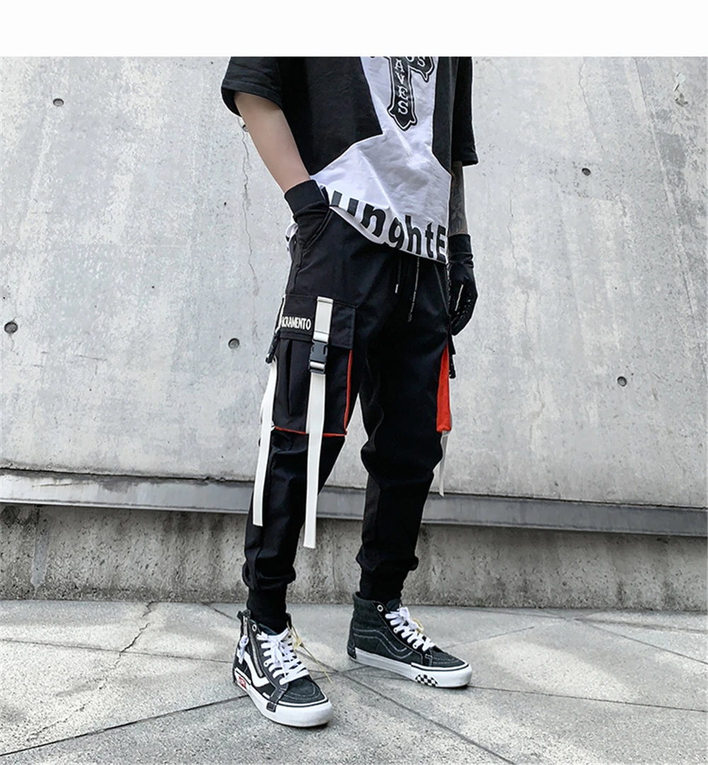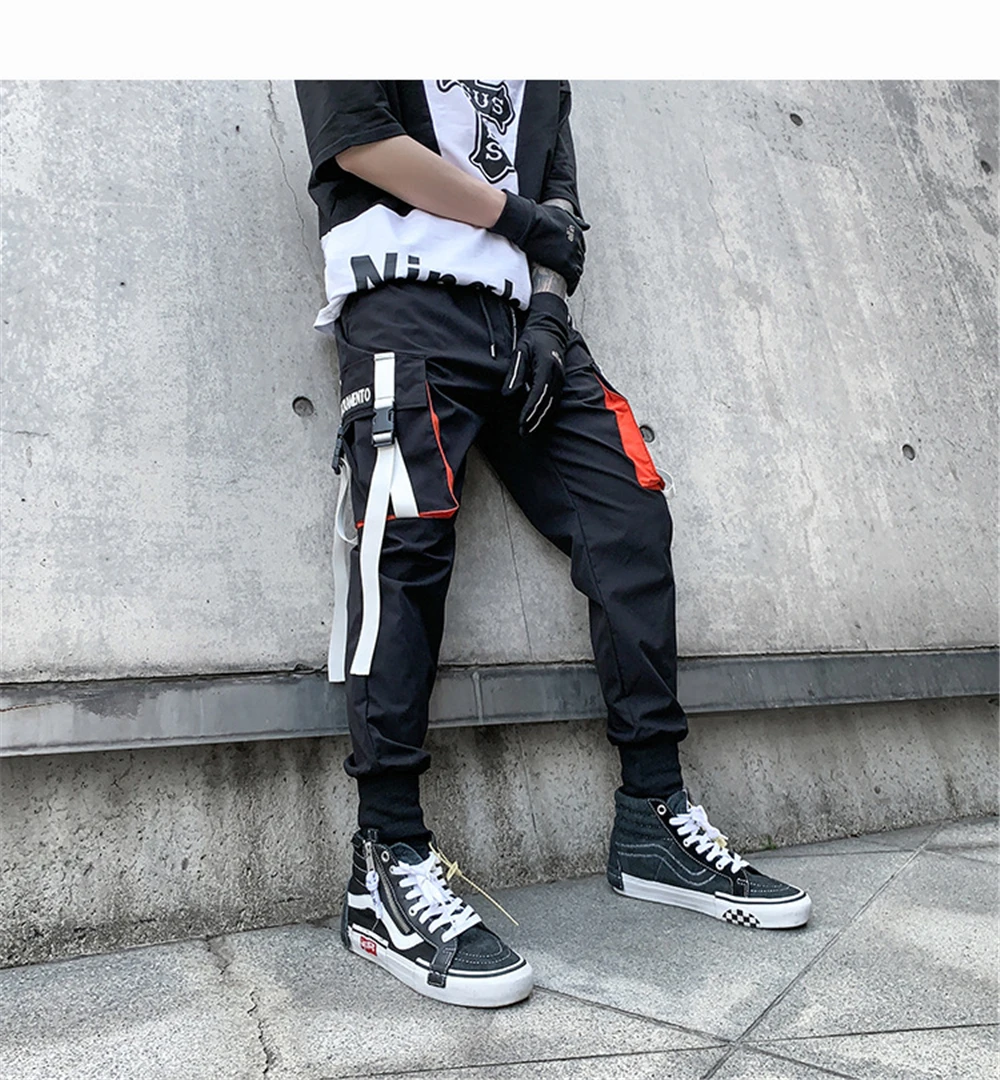 Hearujoy Men Hip Hop Harem Pants Spring Streetwear Elastic Waist Trousers Joggers Multi-pocket Ribbons Black Men's Clothing WB551