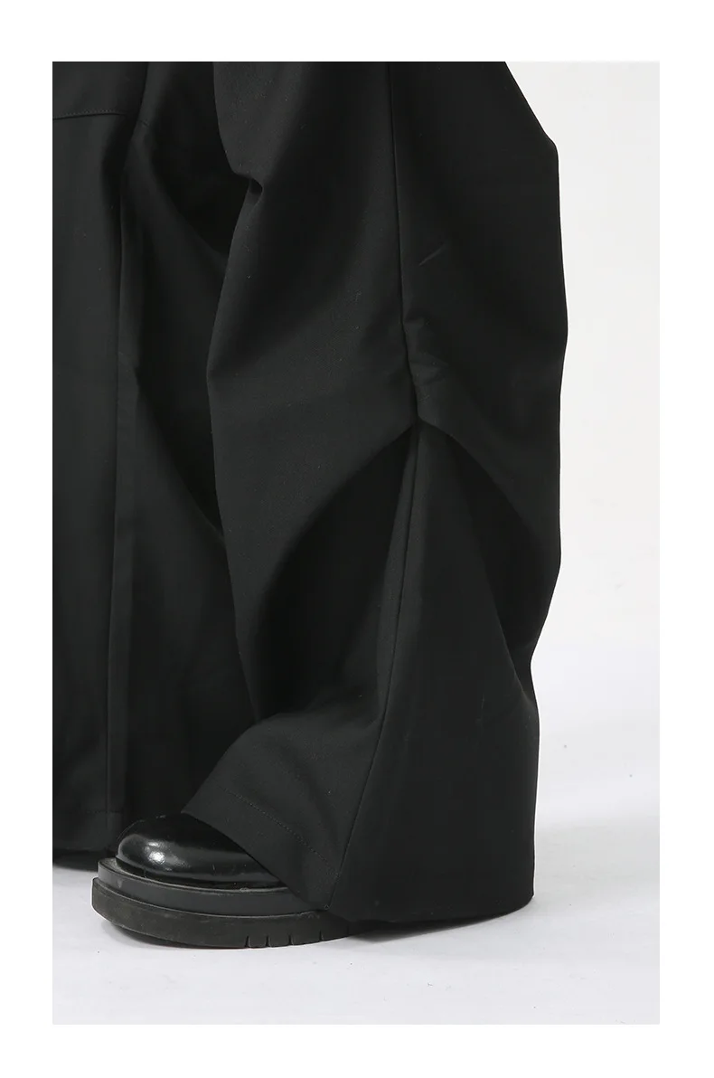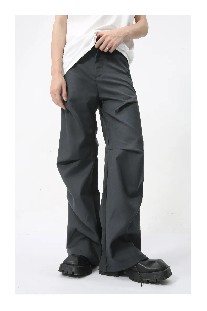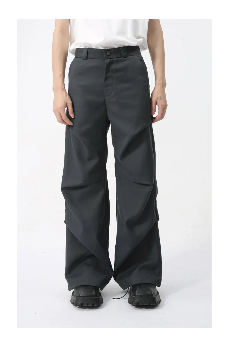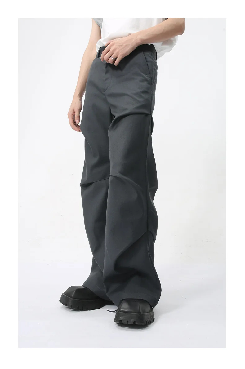 Hearujoy Men's Casual Suit Pants American Style Pleated Mopping Design Solid Color Zipper Opening Versatile Trendy Trousers 9C5821