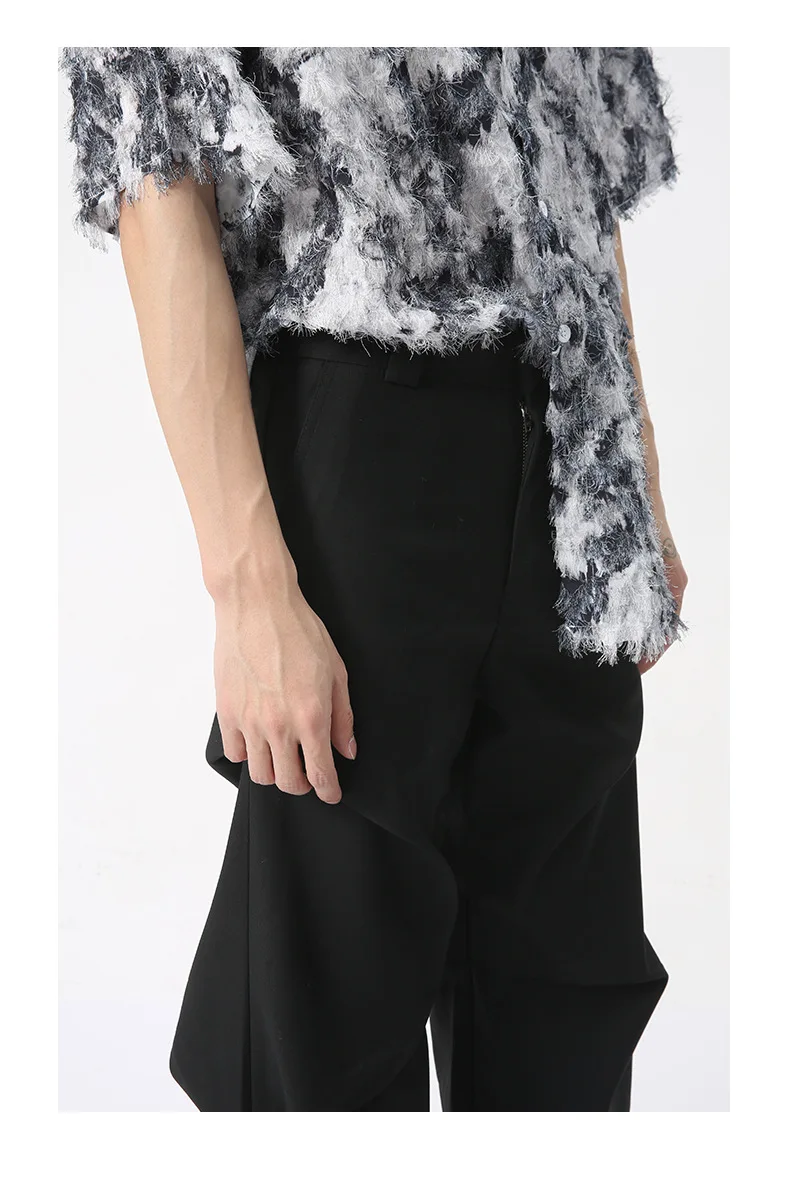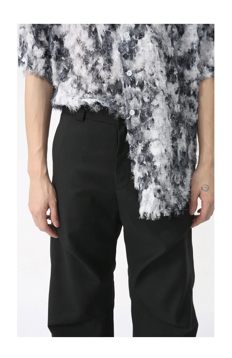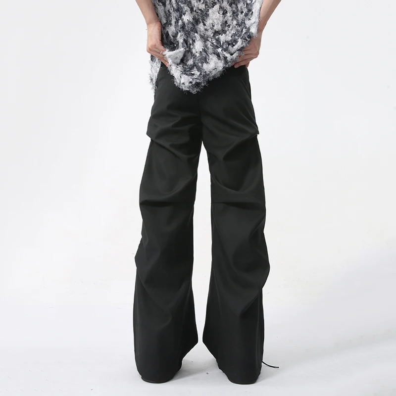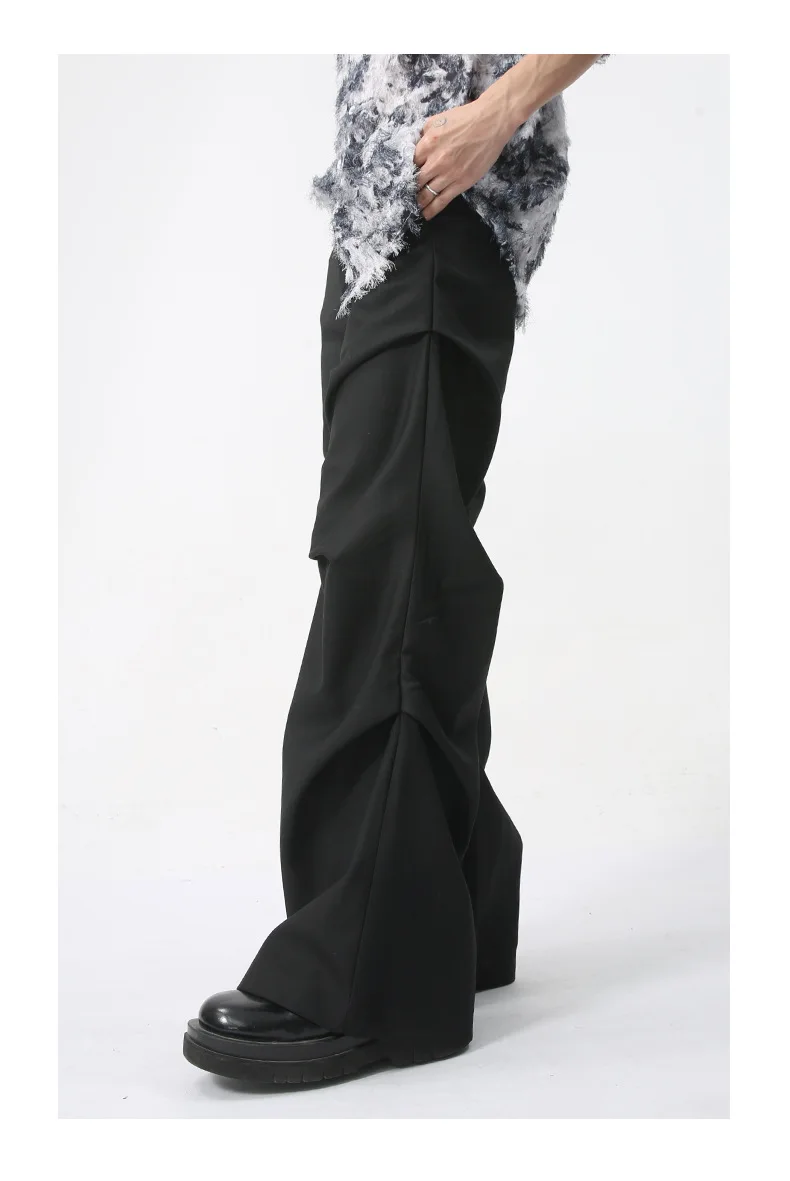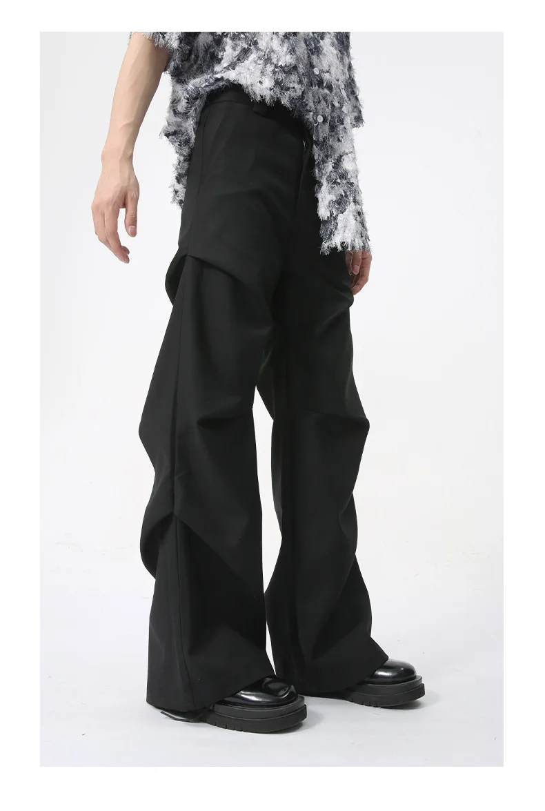 Hearujoy Men's Casual Suit Pants American Style Pleated Mopping Design Solid Color Zipper Opening Versatile Trendy Trousers 9C5821