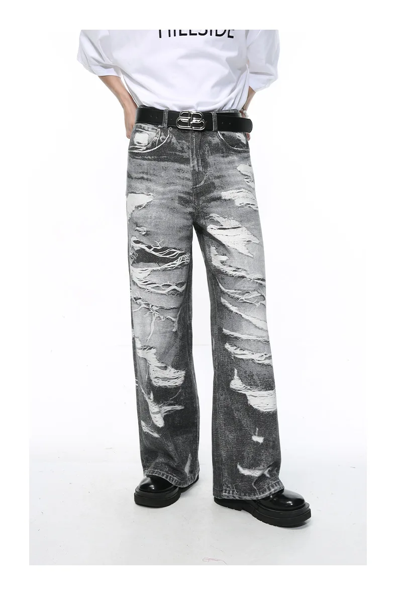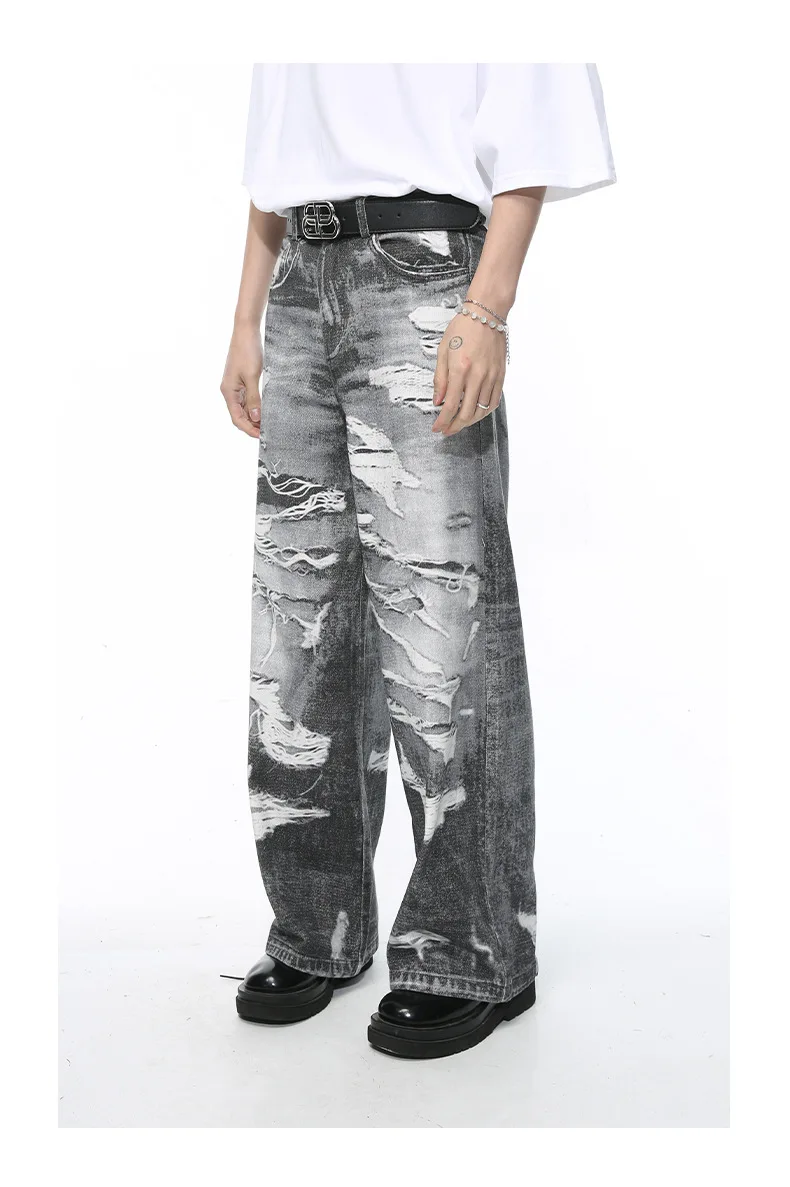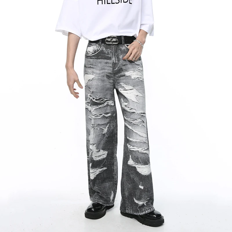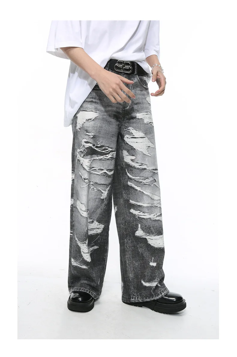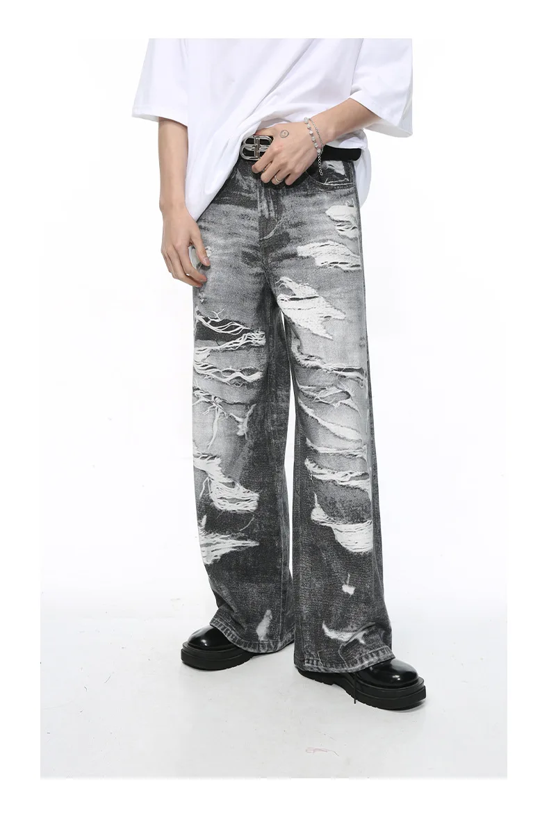 Hearujoy Men's Jeans Summer New Fashion Streetwear Style Hole Worn-out Design Loose Washed Male Denim Pants Straight 9C5394