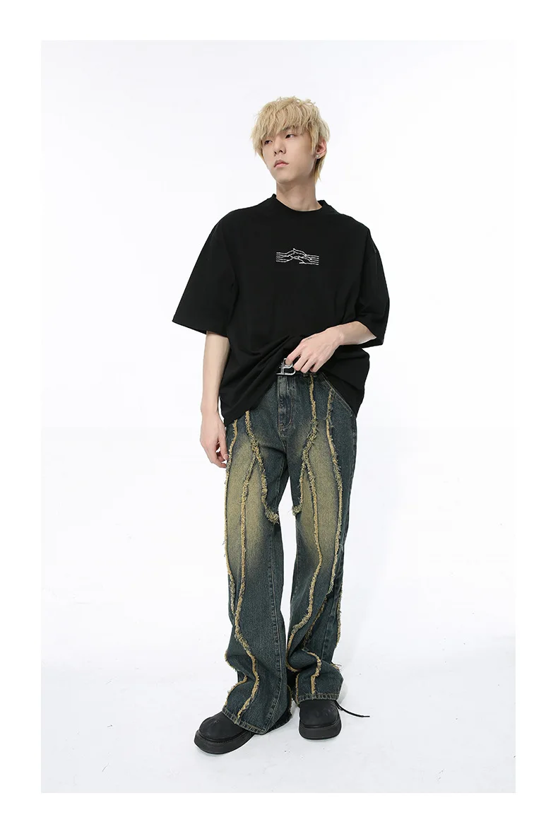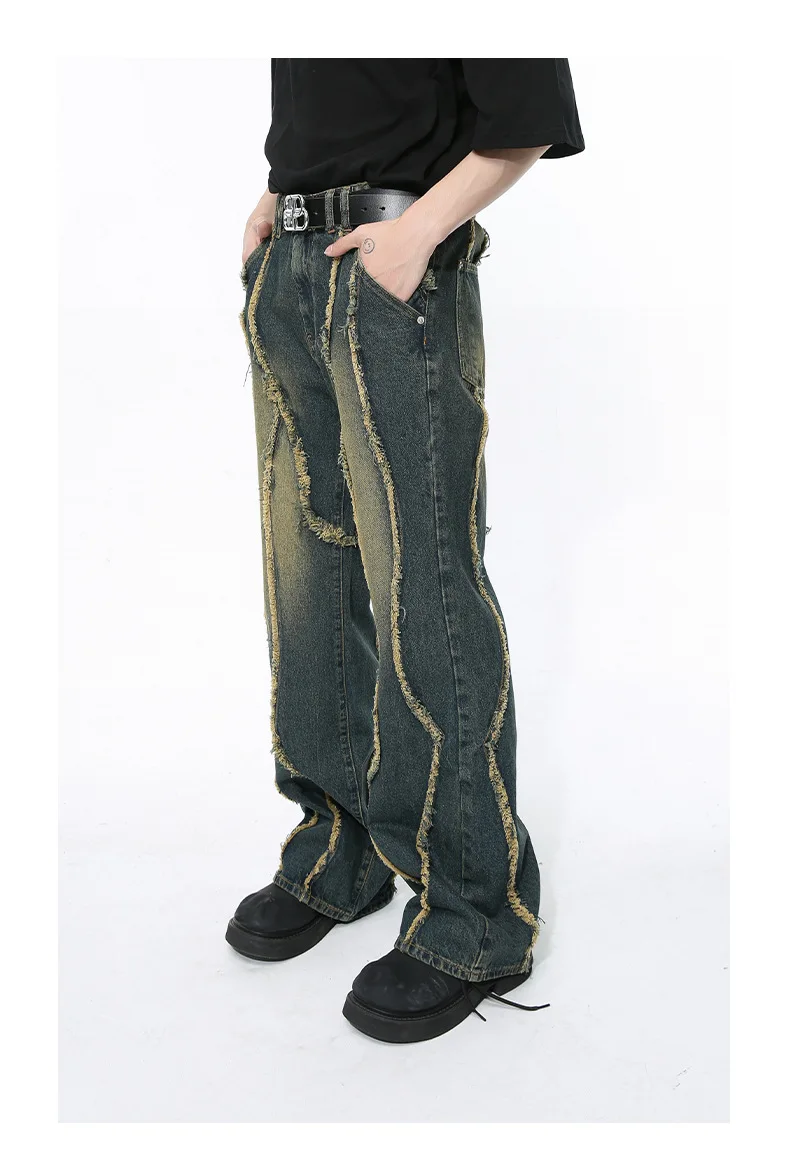 Hearujoy Men's Wear 2024 Spring Denim Pants New Fashion Deconstructed Ragged Edge Splicing Damaged Design Washed Jeans 9C5094