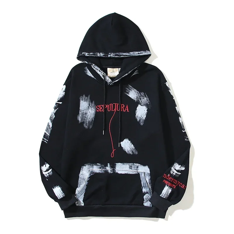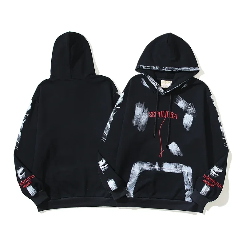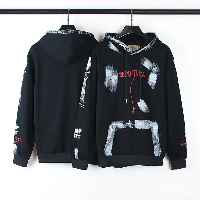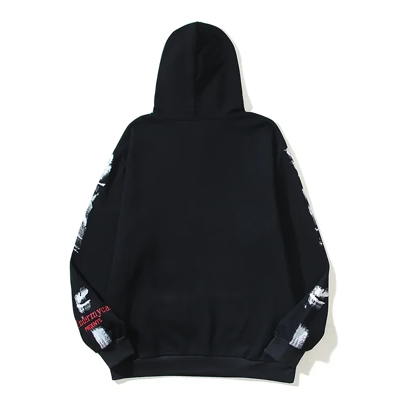 Hearujoy Retro Distressed Graffiti Letter Embroidery Washed Black Sweatshirts Mens and Womens Pullover Ropa Hombre Baggy Hooded Hoodies