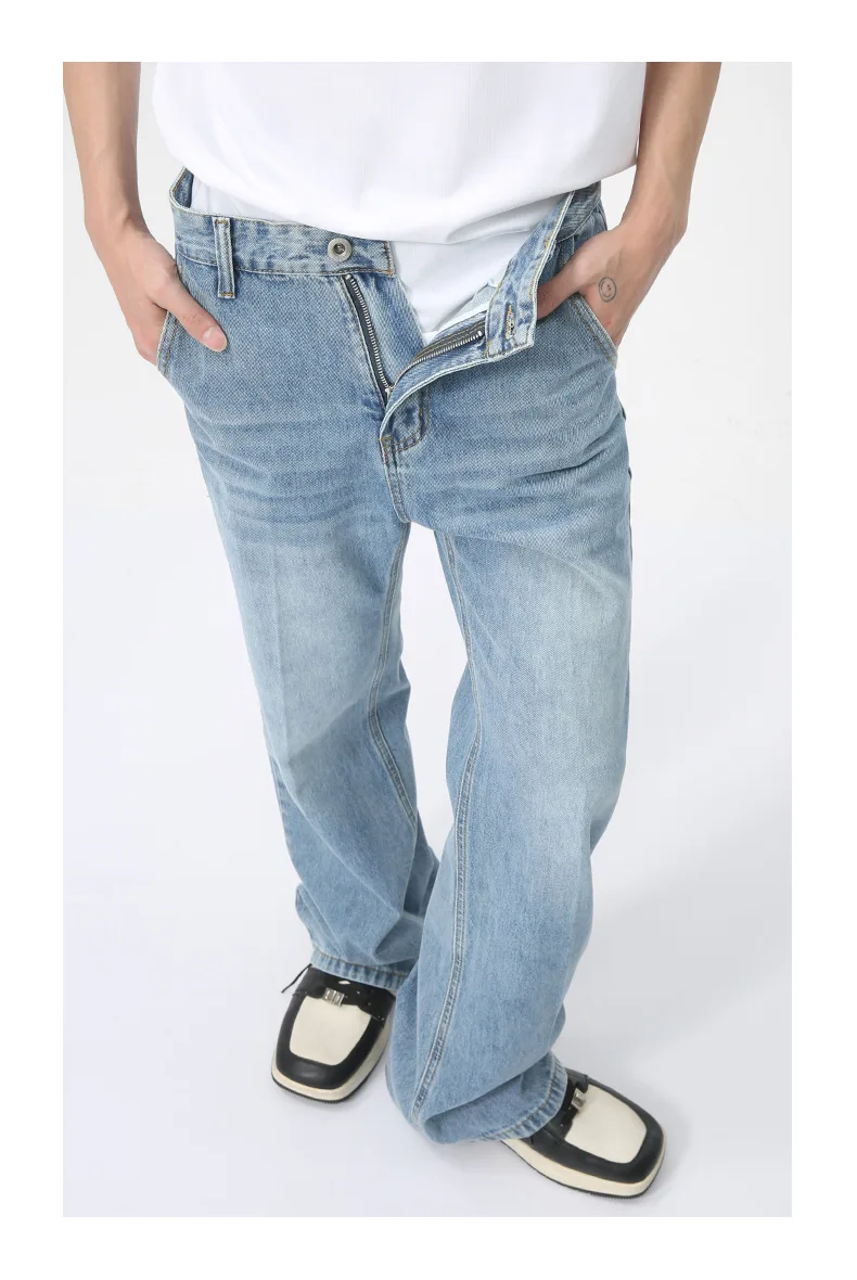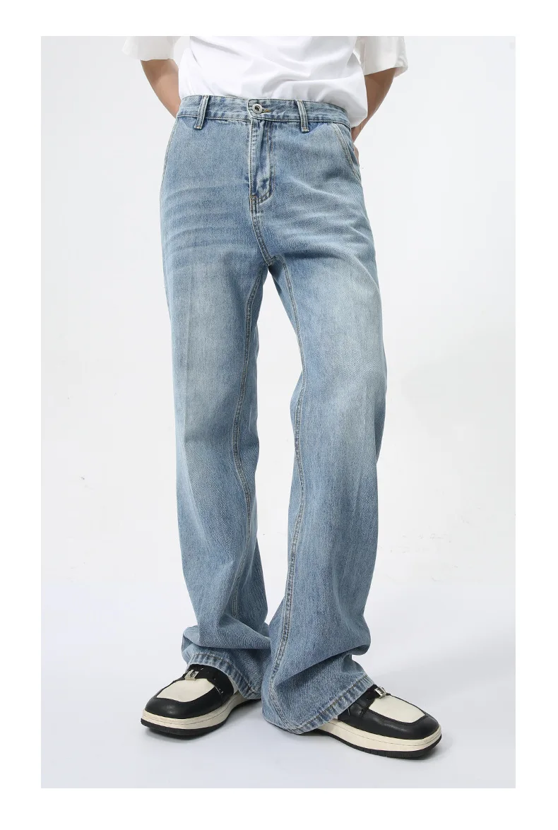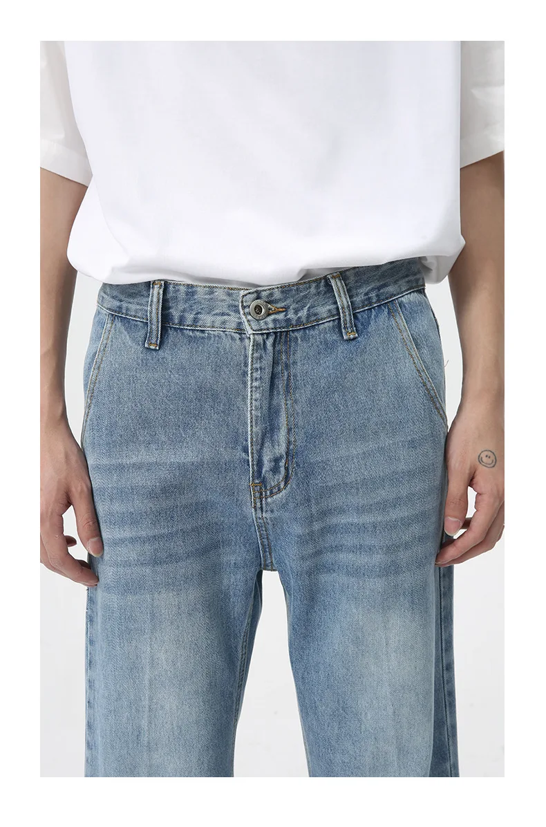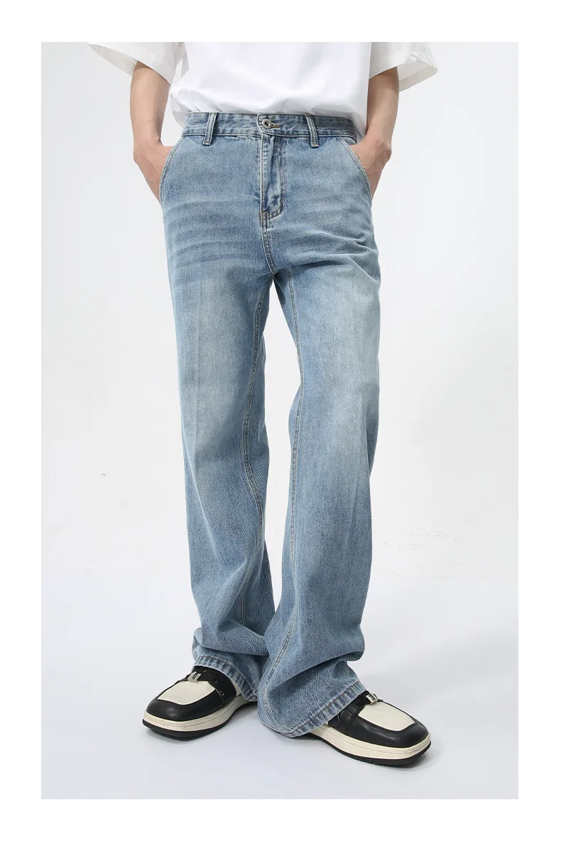 Hearujoy Simple Men Jeans Summer Casual Loose Boot Cut Trousers Zipper Straight Denim Pants Men's Wear Fashion Tide 9C5974