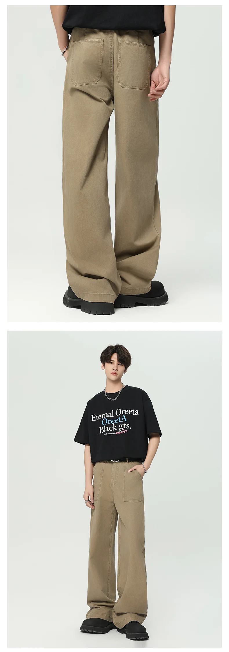 M Length: 105CM? ? Waist: 74CM? ? Hip: 96CM? ? Tight: 61CM? ? Leg opening: 50CM