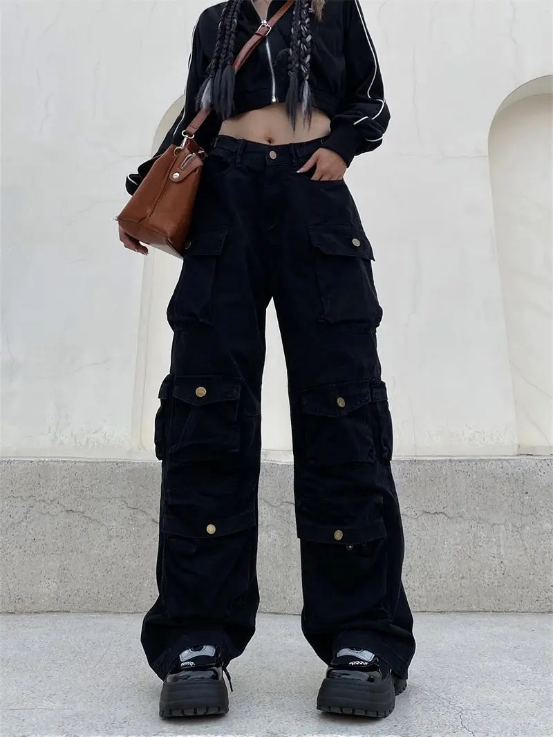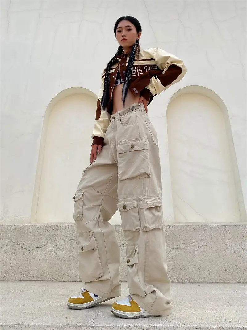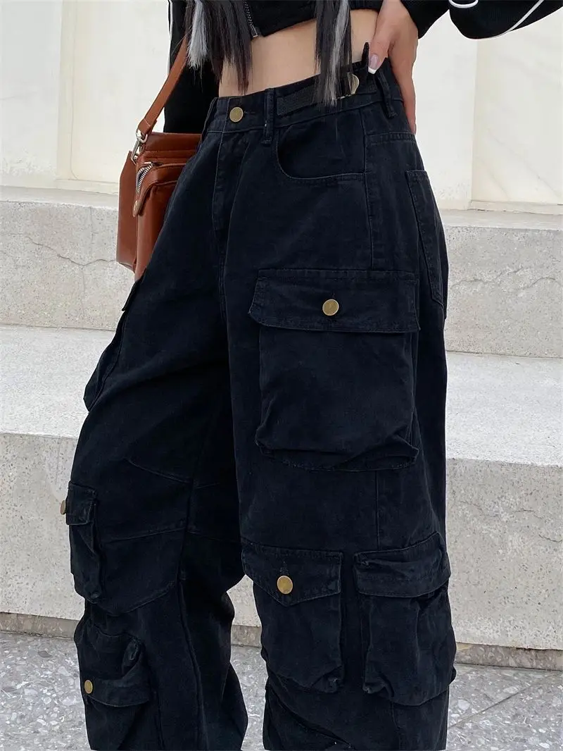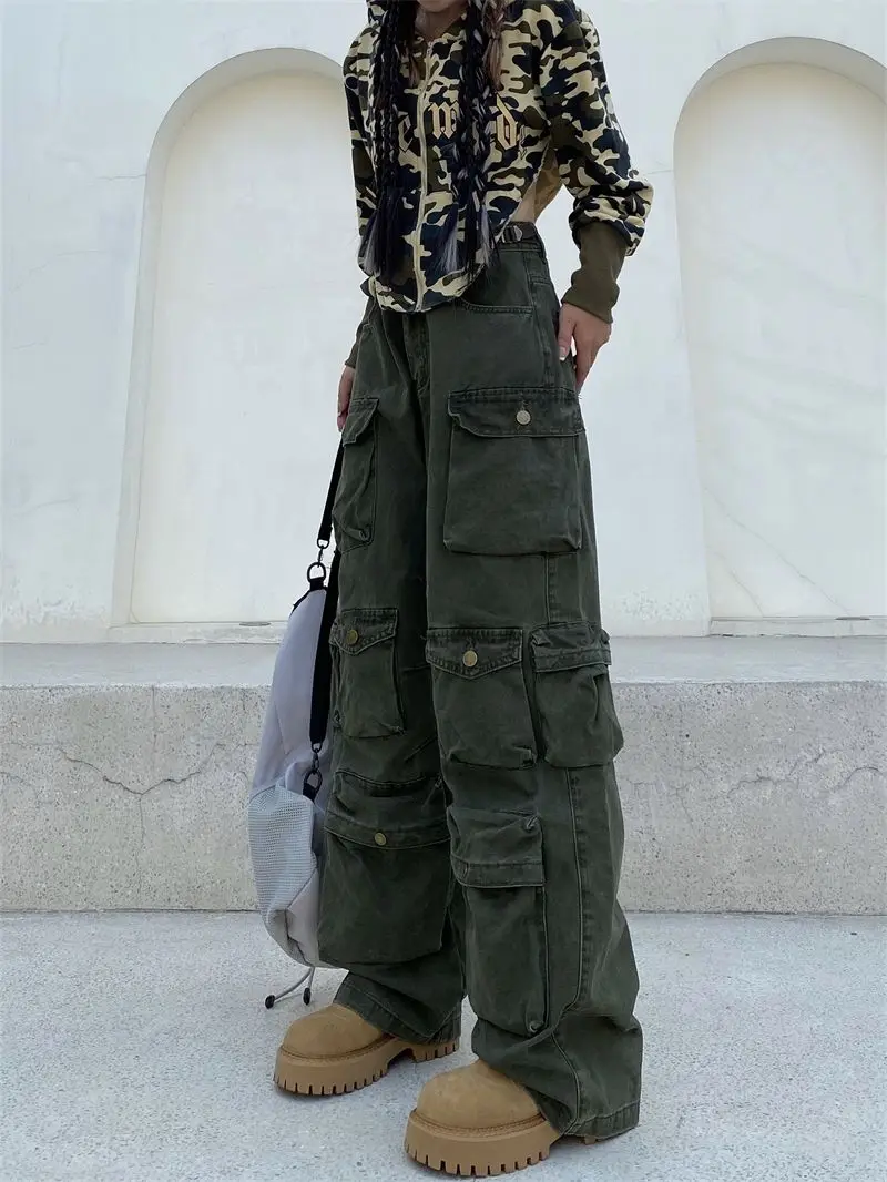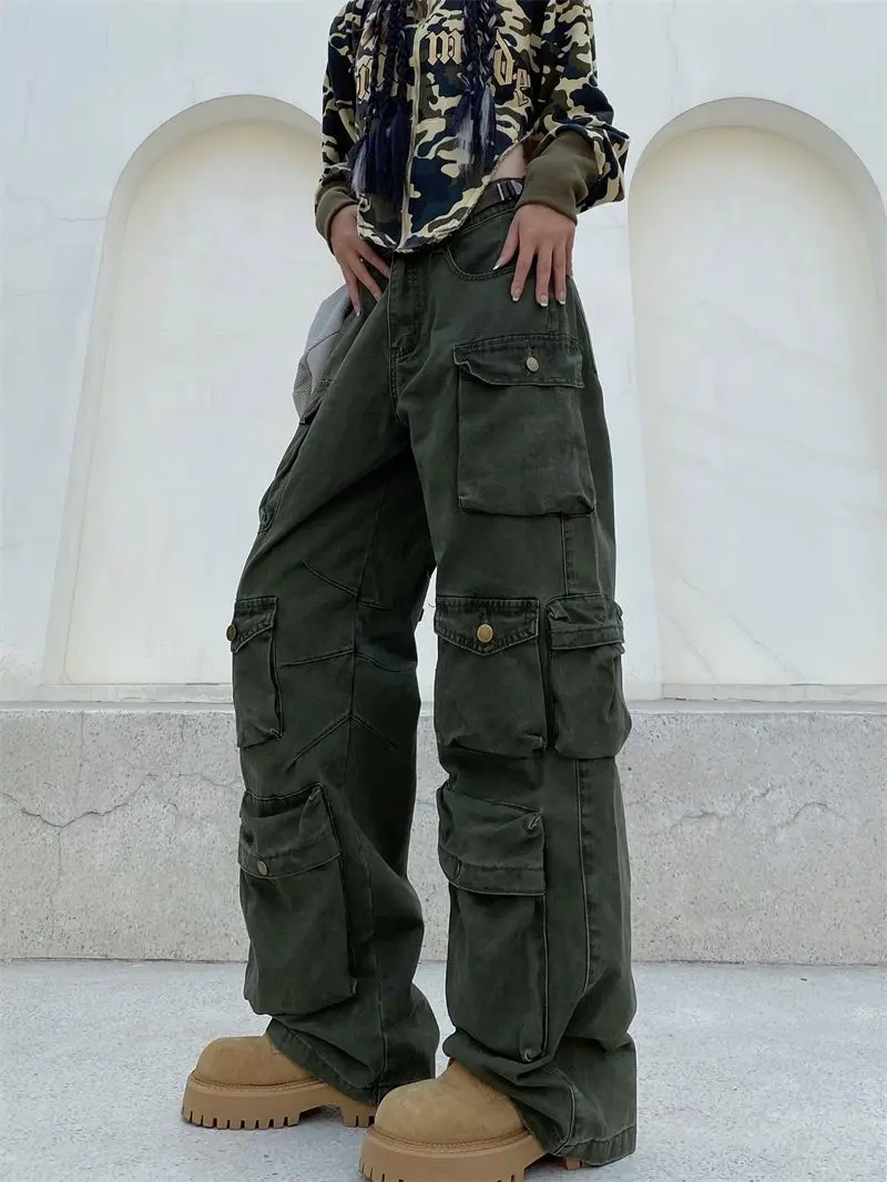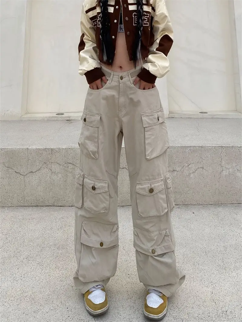 Hearujoy Vintage heavy industry functional wind multi-pocket cargo pants womens hiphop casual high waist pants streetwear women y2k pants