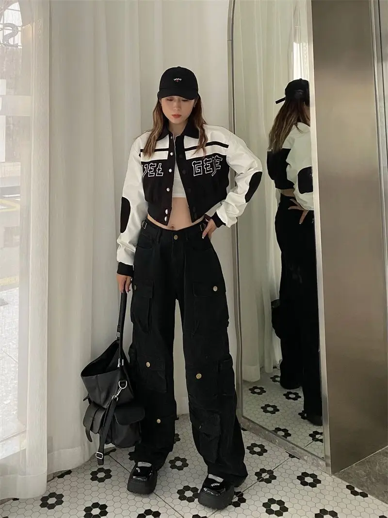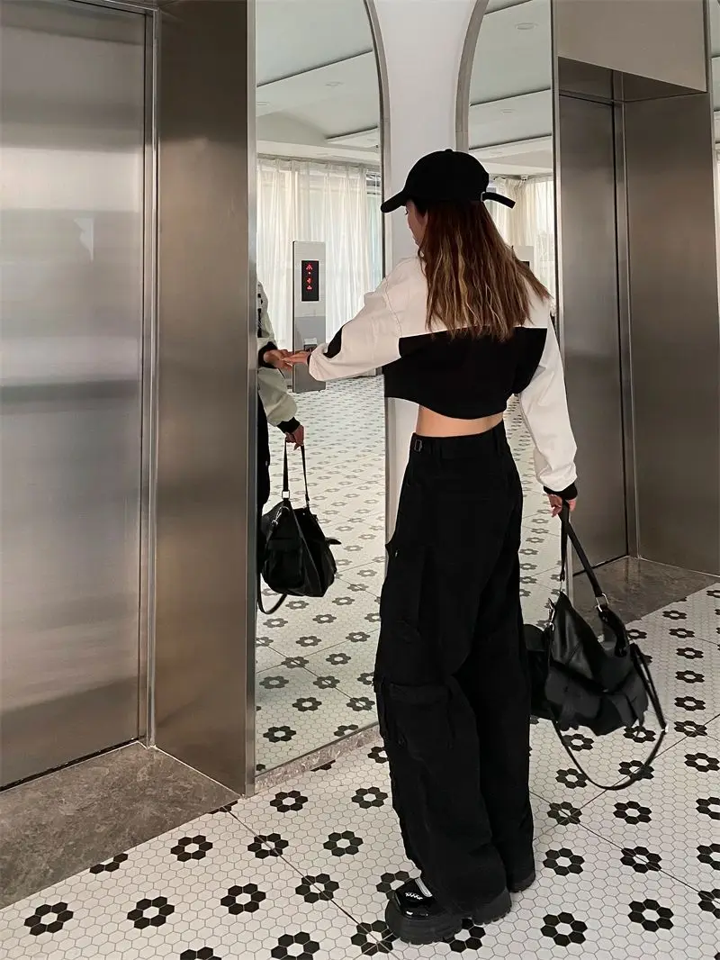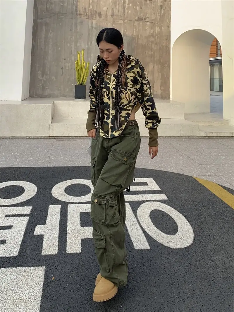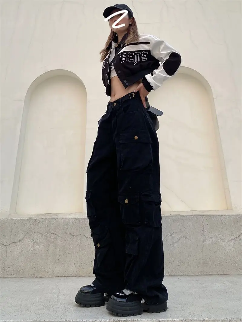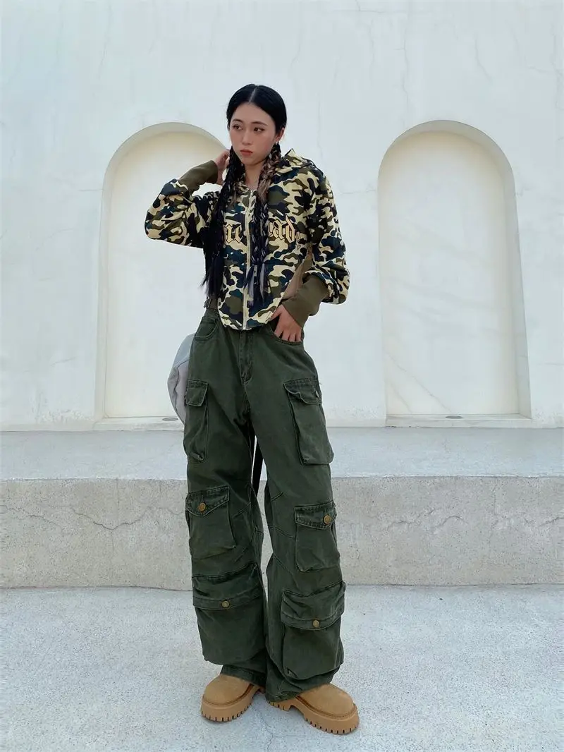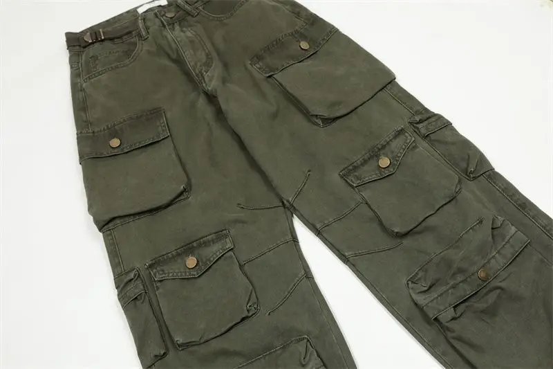 Hearujoy Vintage heavy industry functional wind multi-pocket cargo pants womens hiphop casual high waist pants streetwear women y2k pants