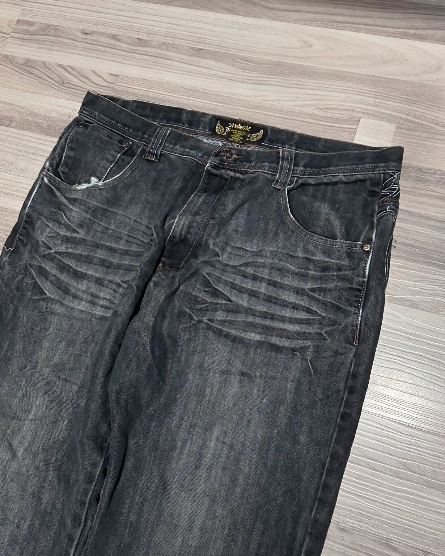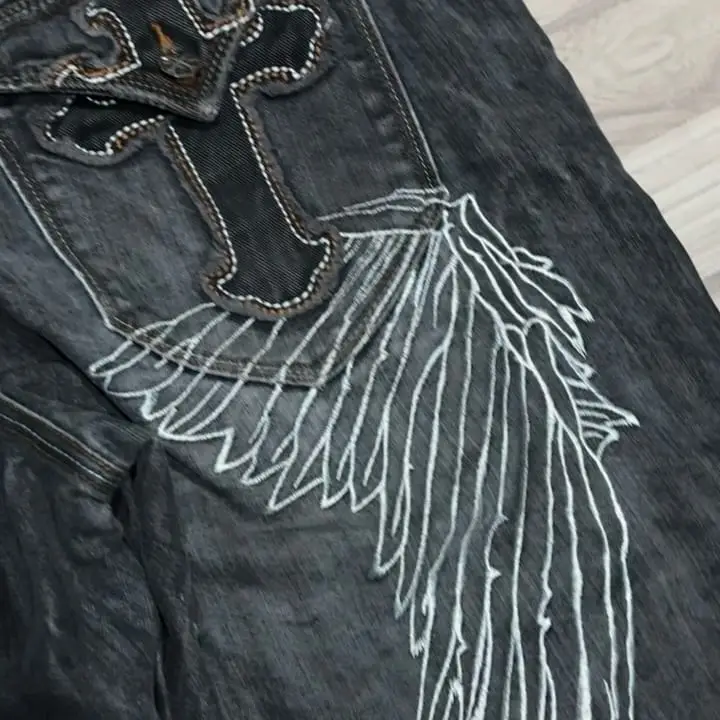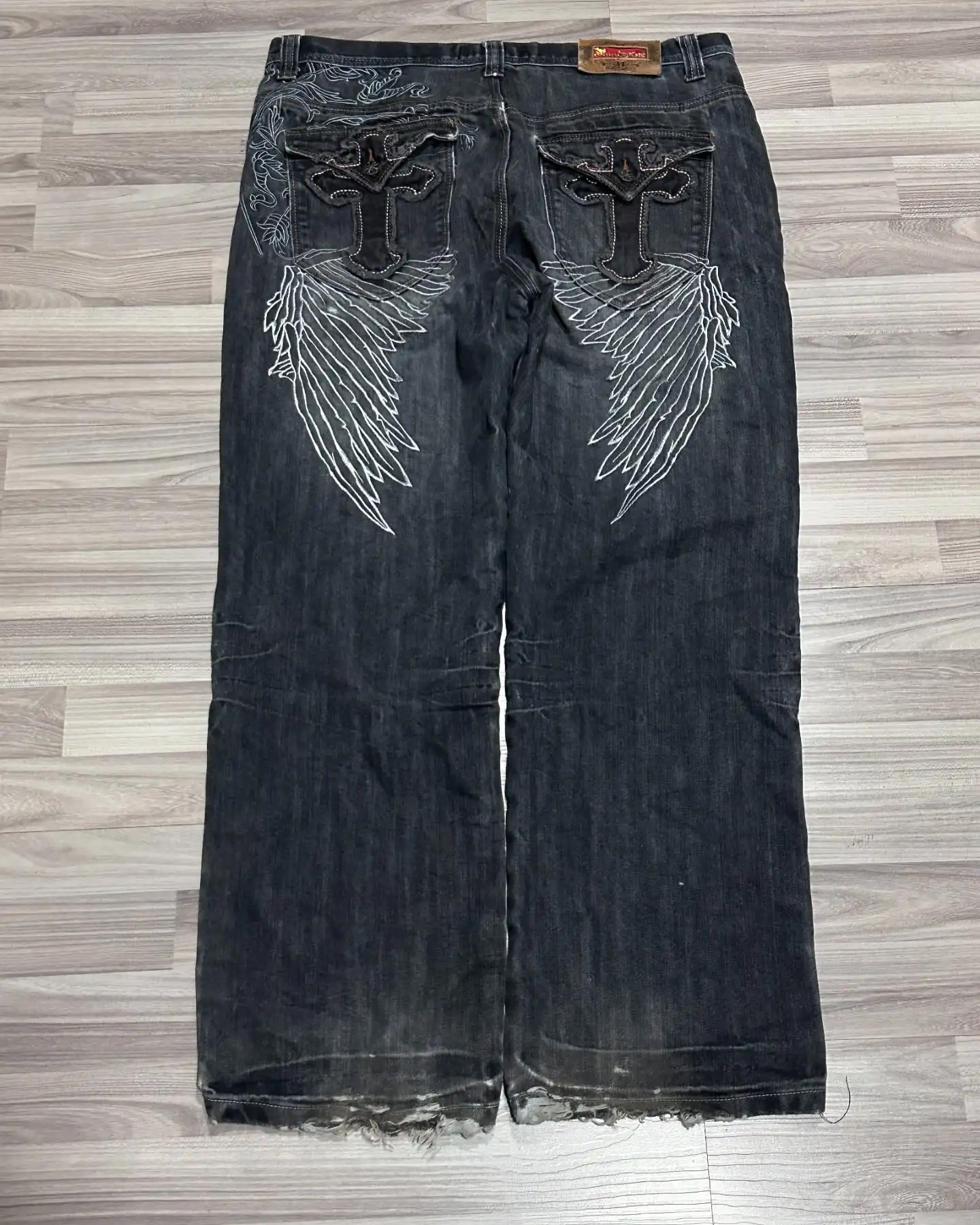 Hearujoy Vintage Jeans New Y2K Fashion Hip Hop Wing Embroidery Baggy Jeans Men And Women Streetwear Loose High Waist Wide Leg Denim Pants