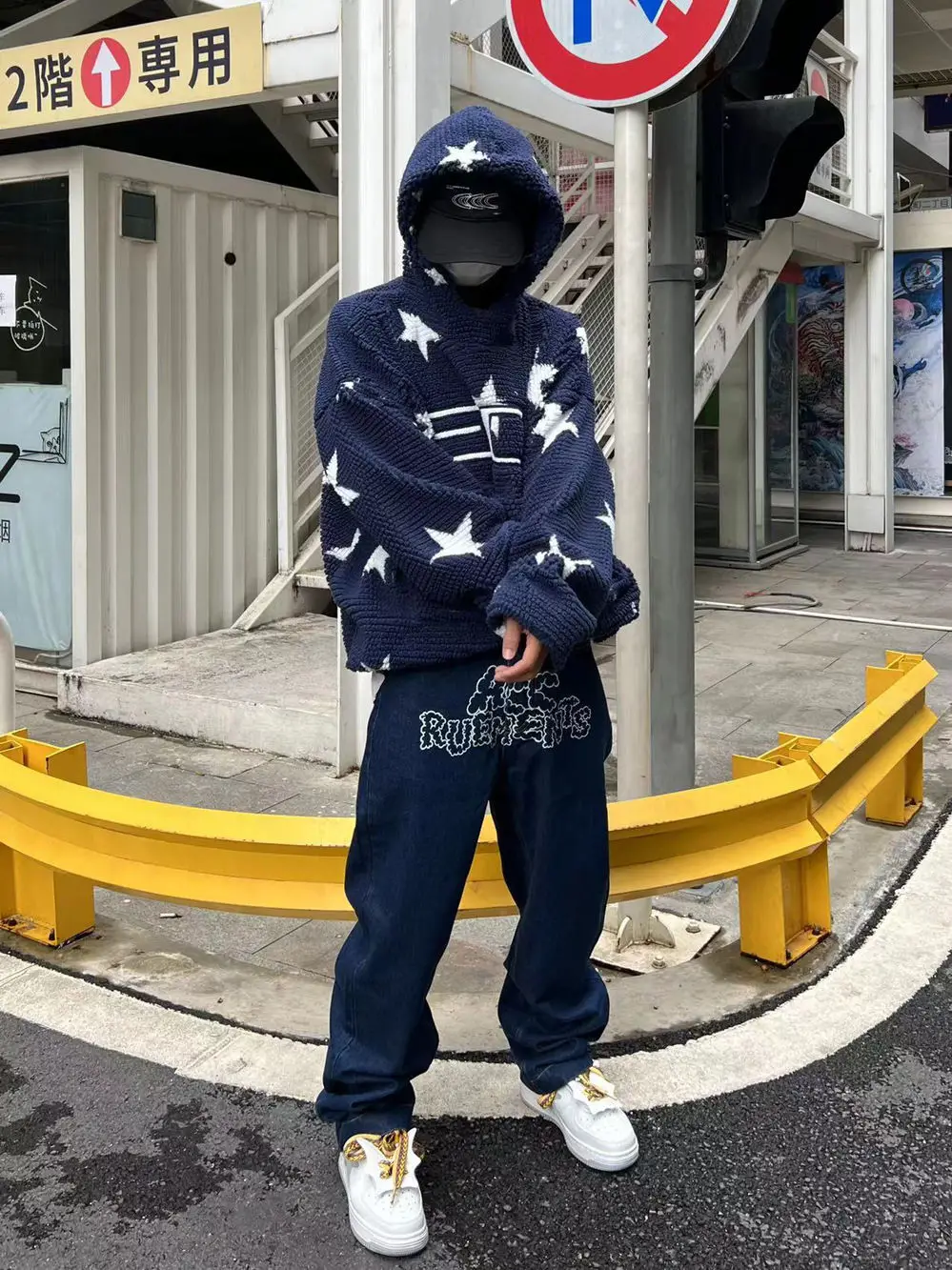 Hearujoy Y2k letter star print jeans women's original atmosphere American style zipper high waist hip-hop loose retro straight-leg pants