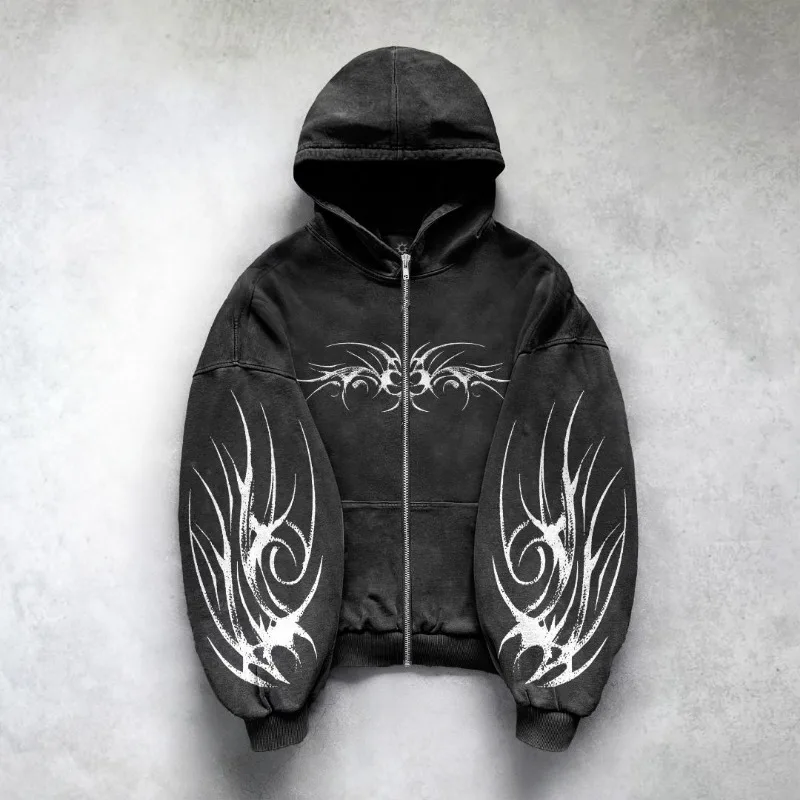 Y2K popular trend geometric pattern printed cardigan zipper hoodie women 2024 new hip-hop streetwear casual all-match sweatshirt